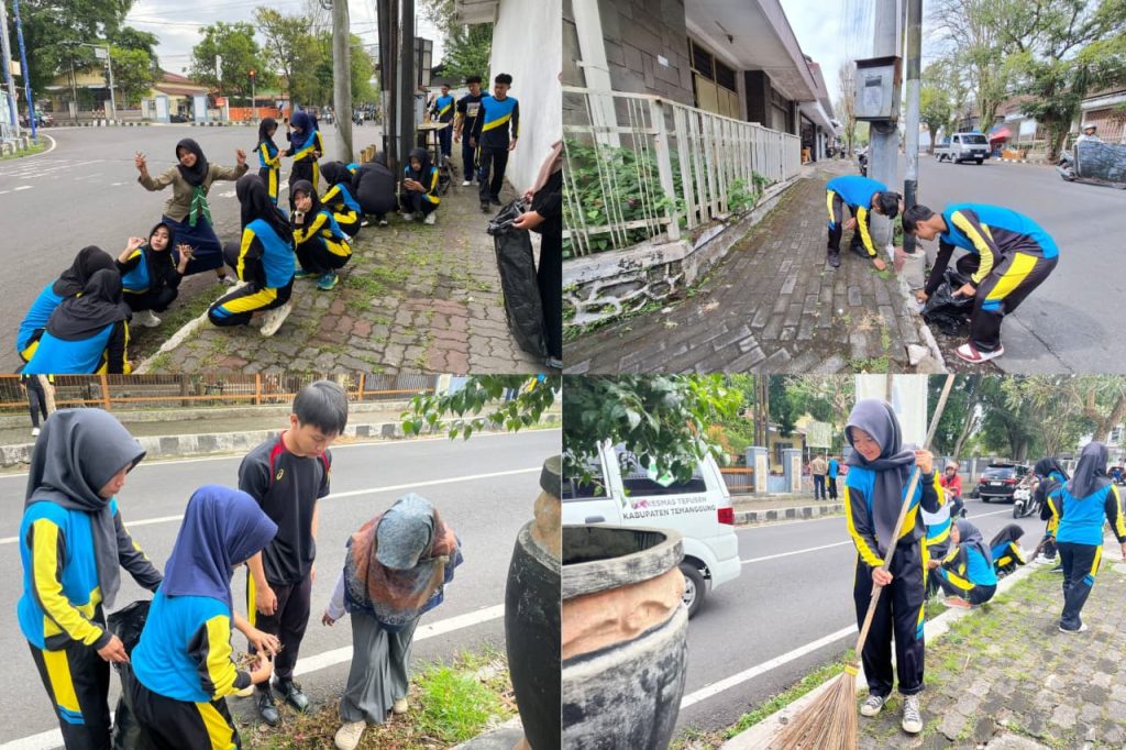 Aksi ini dimulai dengan apel bersama di halaman sekolah yang dilanjutkan dengan sarapan MBG bersama. Setelah apel, peserta dibagi ke dalam beberapa kelompok untuk menyusuri jalur pembersihan yang telah ditentukan. Rute pembersihan meliputi Jl. Setiabudi, Jl. Dr. Soetomo, Jl. Samanhudi, Jl. KH Agus Salim, hingga Jl. Diponegoro Temanggung. Dengan membawa peralatan kebersihan sederhana seperti sapu, pengki, karung, dan sarung tangan, para peserta membersihkan sampah plastik, puntung rokok, kertas, hingga dedaunan kering yang berserakan di tepi jalan. Peserta kegiatan ini juga memilah sampah organik dan anorganik yang dipisahkan pada trash bag yang berbeda agar mempermudah pengolahan sampah.